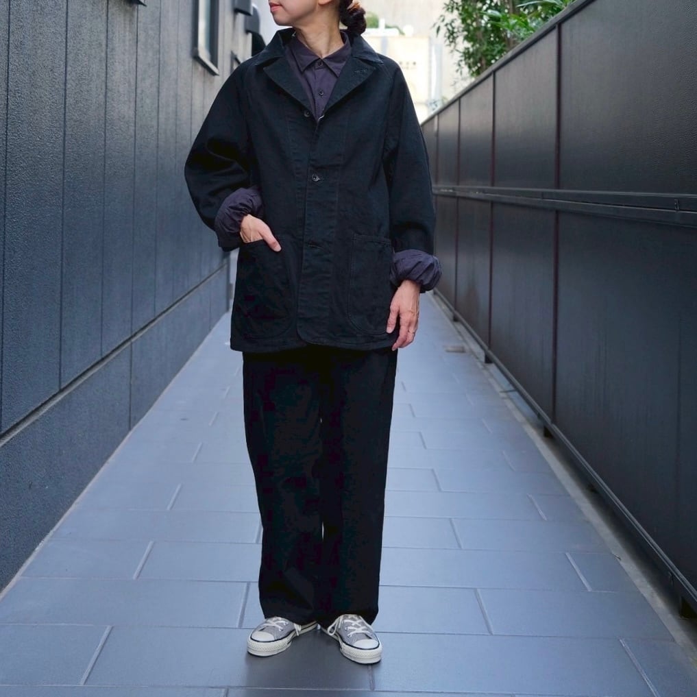 スモーキーな色とドライタッチなブラックデニムの一重仕立てのワークジャケットです。
