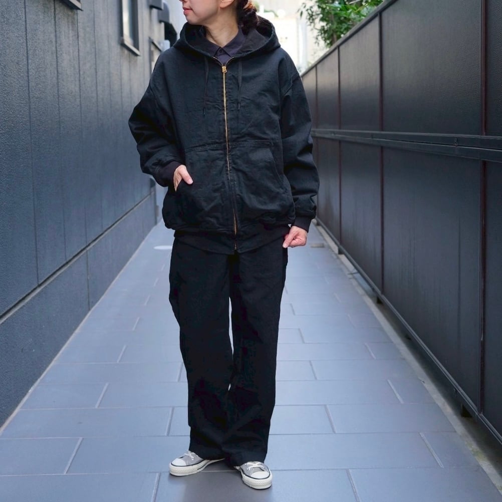 スモーキーな色とドライタッチなブラックデニムの一重仕立てのワークジャケットです。