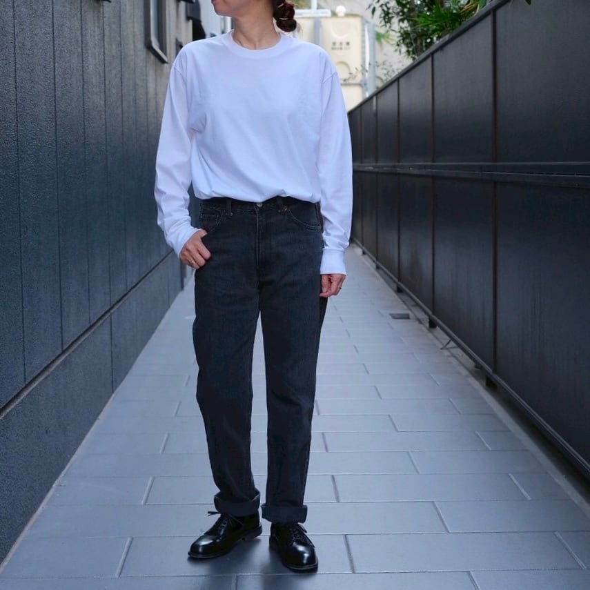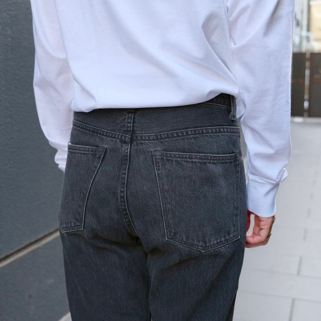 なぜ密かにかというとまずこの普通さがわかりにくい点にあり、ホントに個人的な気分としか言いようの無い、色落ちの良いブラックジーンズ、そして股上やや深めのジッパーフライで膝下から裾にかけてのほんのりテーパード、いわゆる細身のブラックデニム。