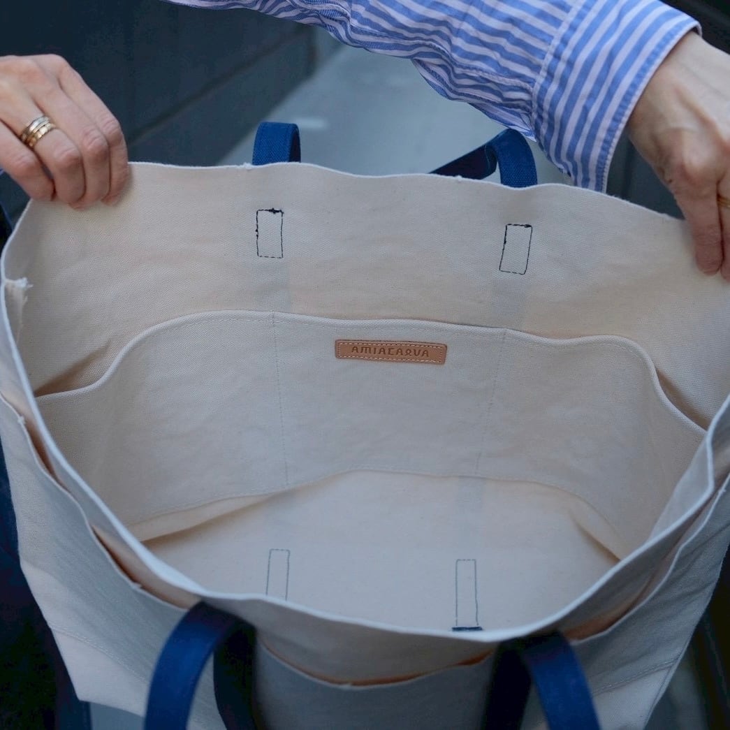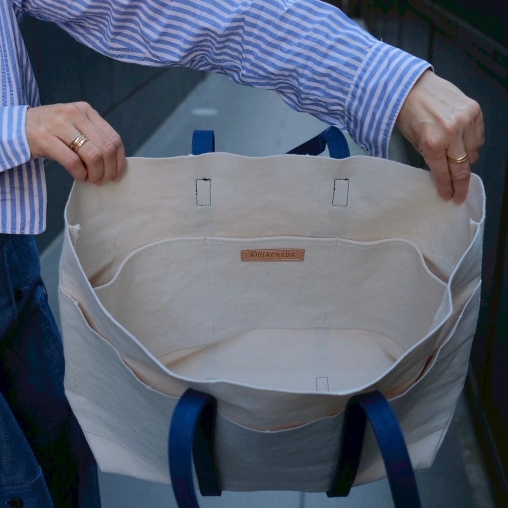 AMIACALVA(アミアカルヴァ)A054 WASHED CANVAS 6POCKETS TOTE(M) 2TONE NAVY