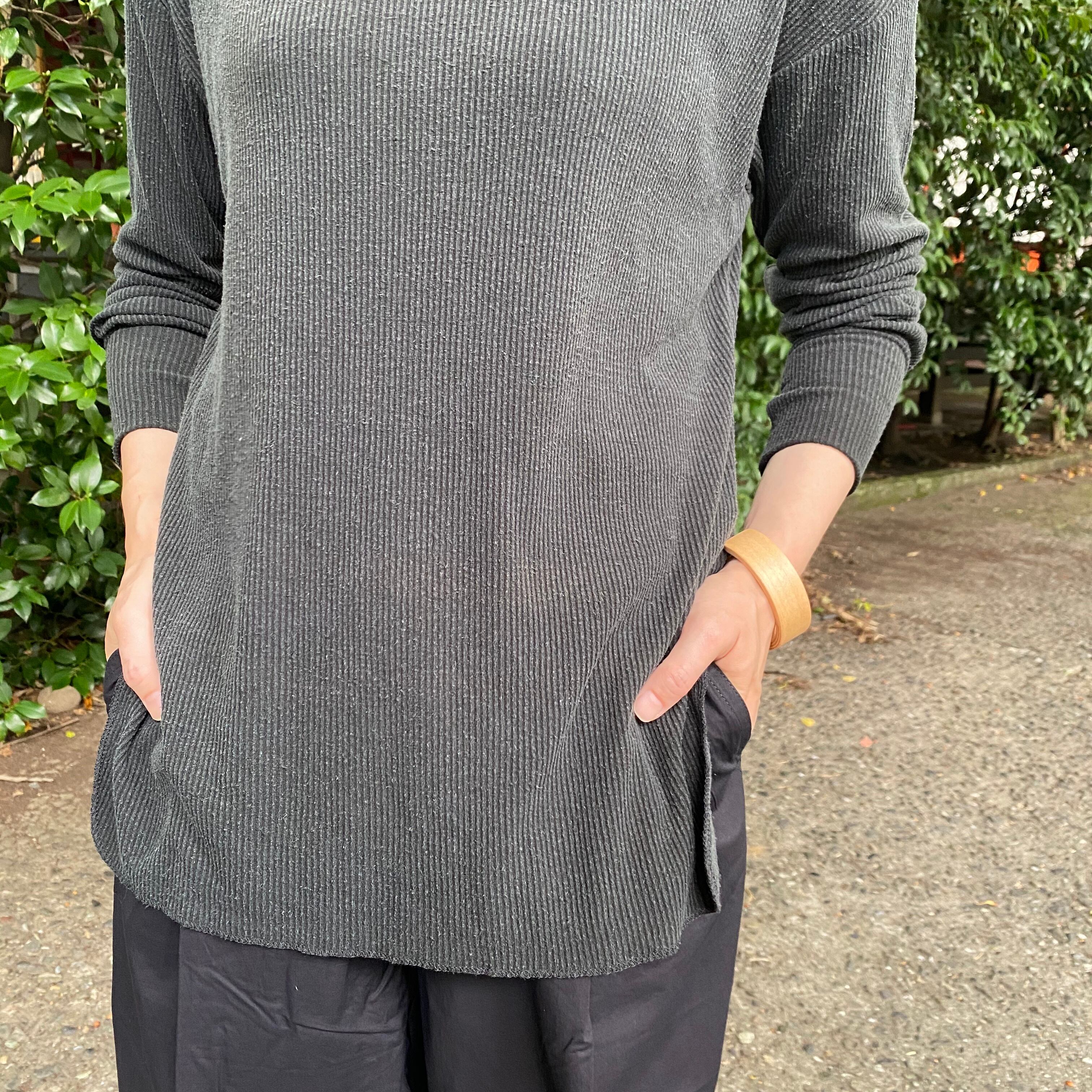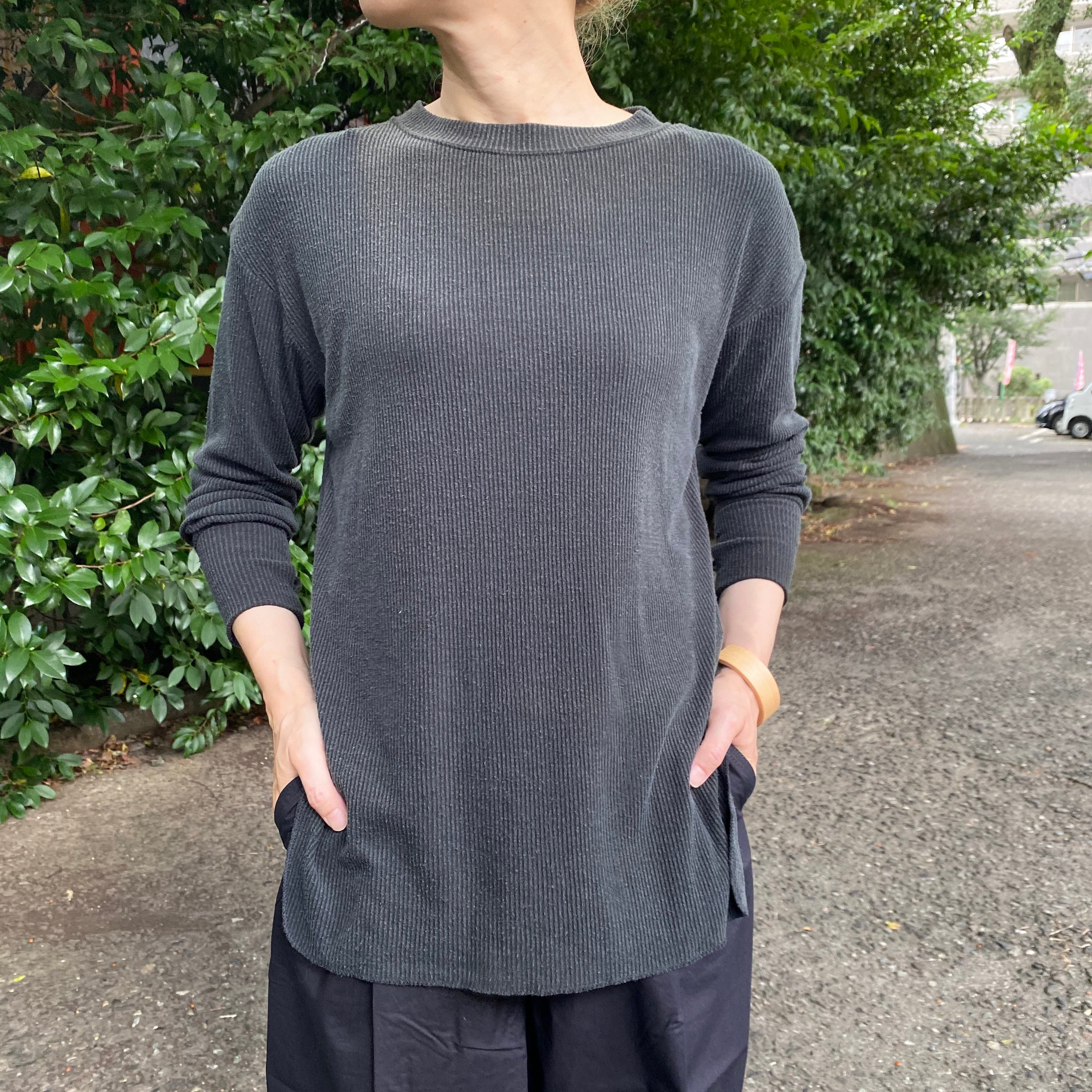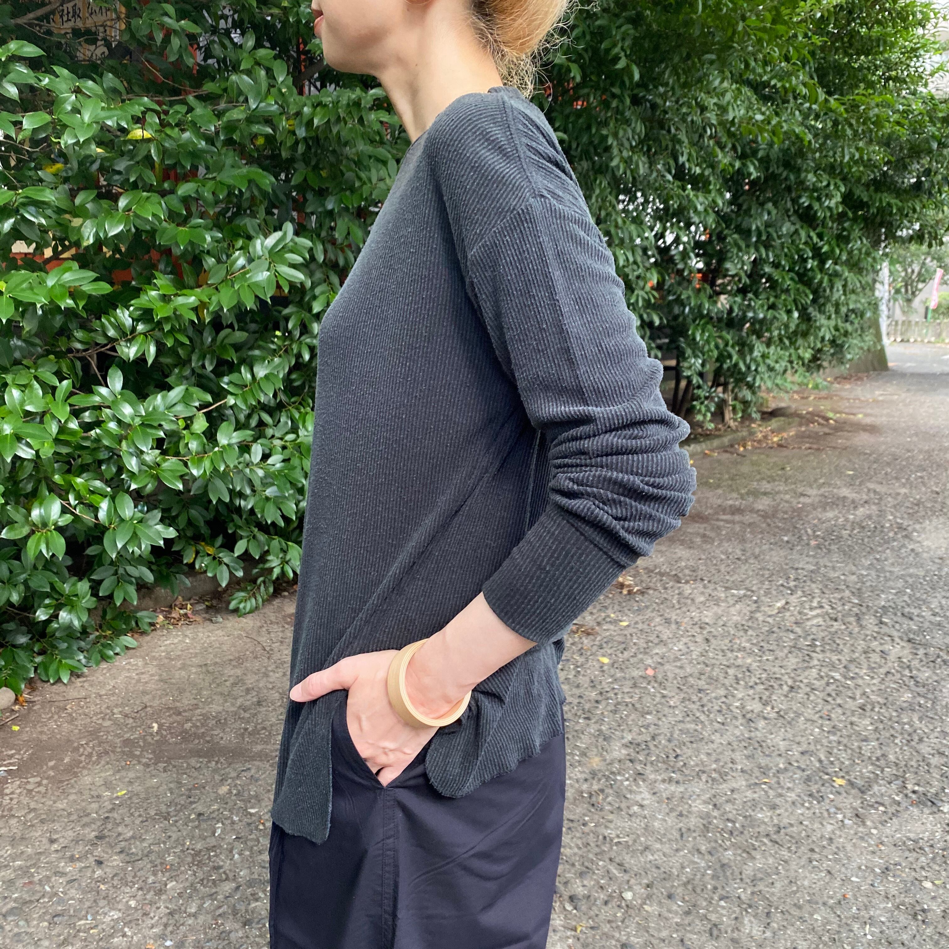unfil (アンフィル) raw silk ribbed-jersey long-sleeve tee / carbon