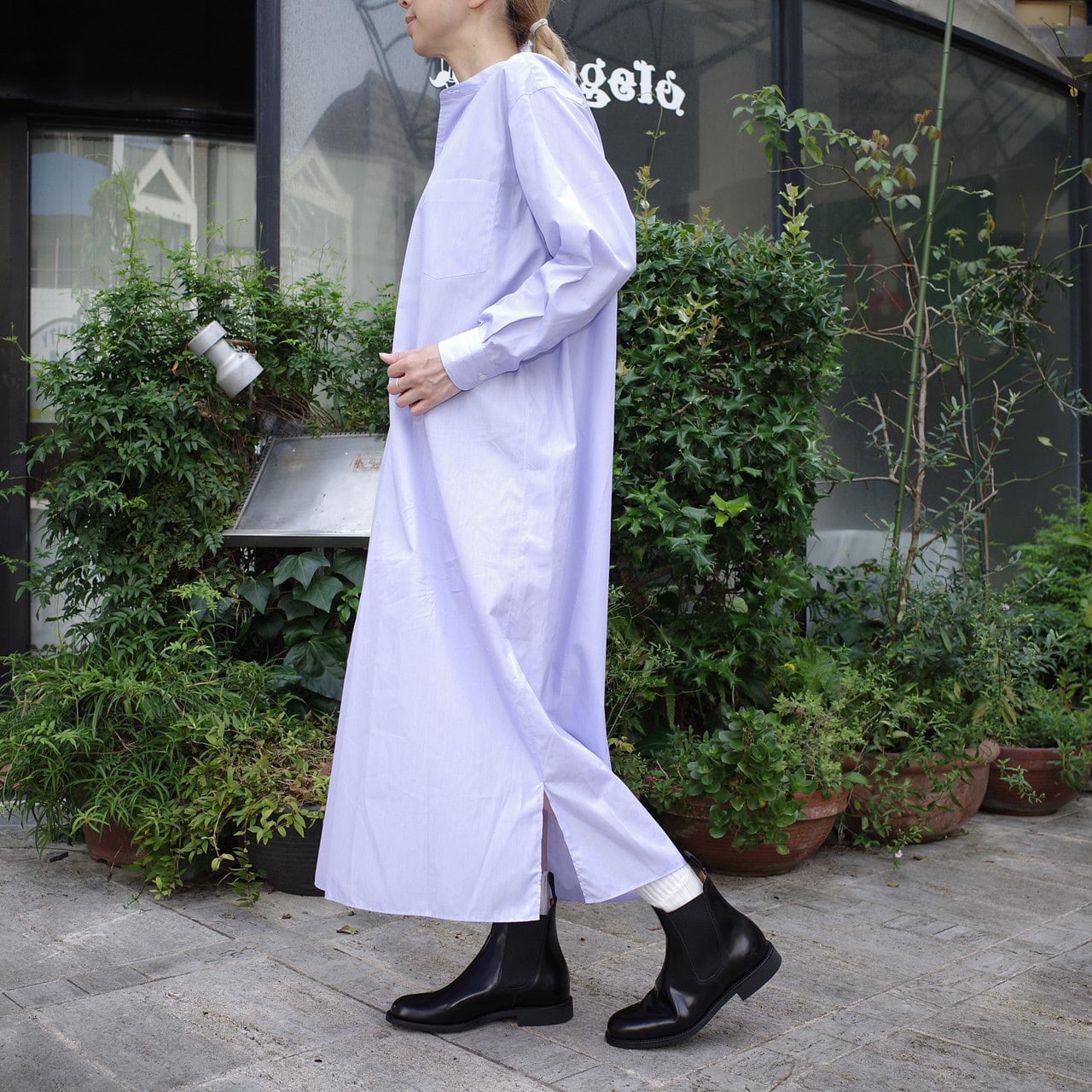 COMOLI (コモリ) 別注ポプリンシャツワンピース sax