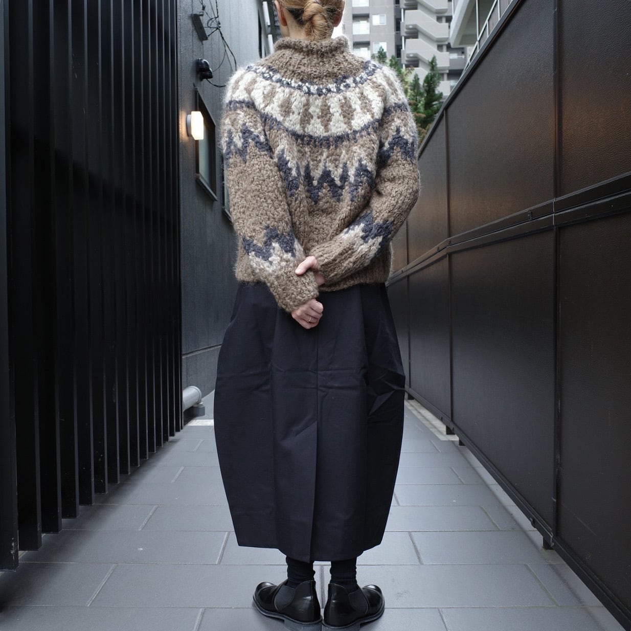 ざっくりとしたノルディック柄のジャカードを日本国内で手編みした定番のスペシャルニットです。