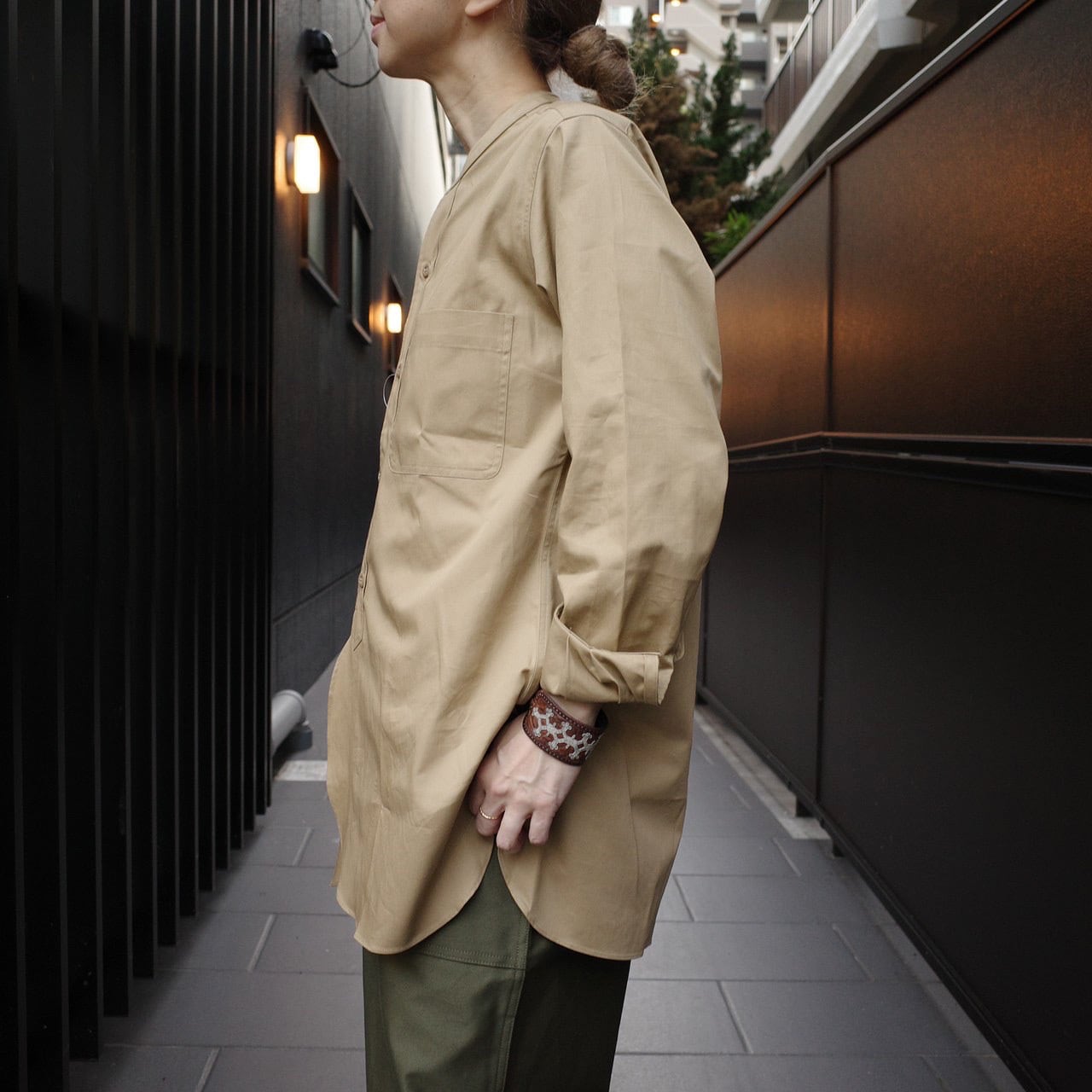 sans.limive(サンリミット )バーバリーツイル長丈スタンドシングルカフス