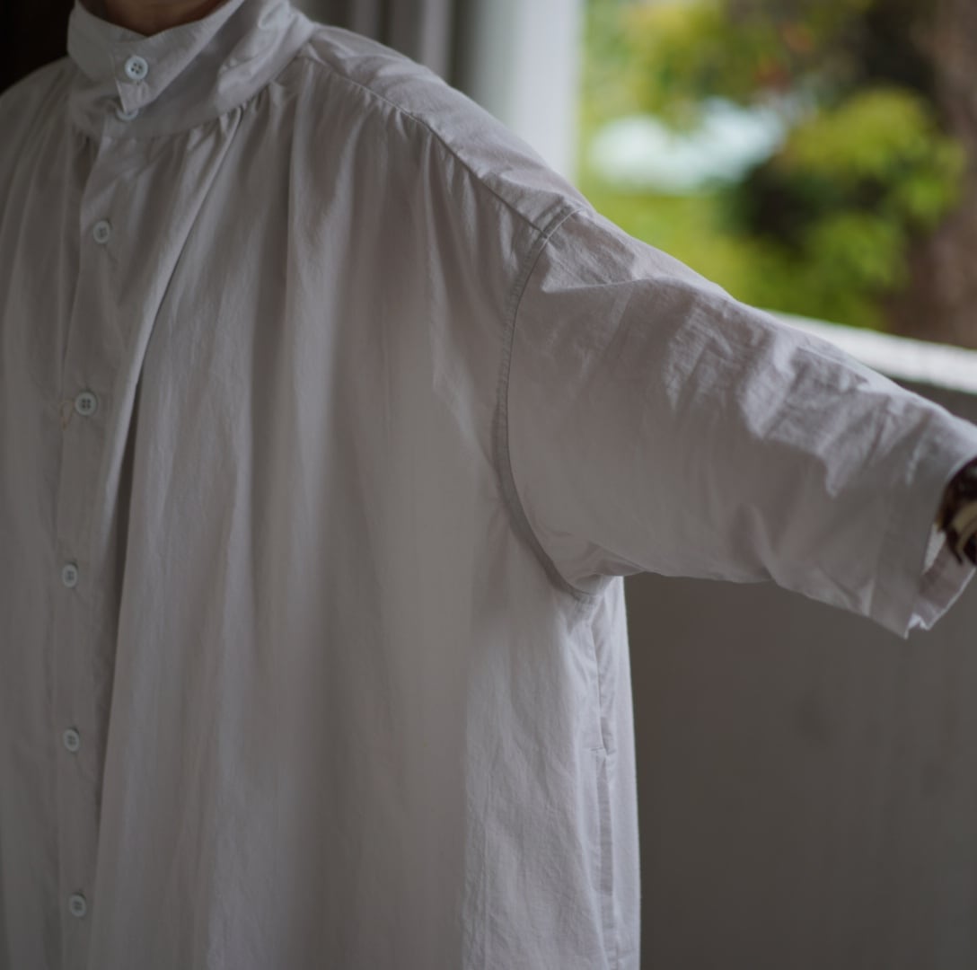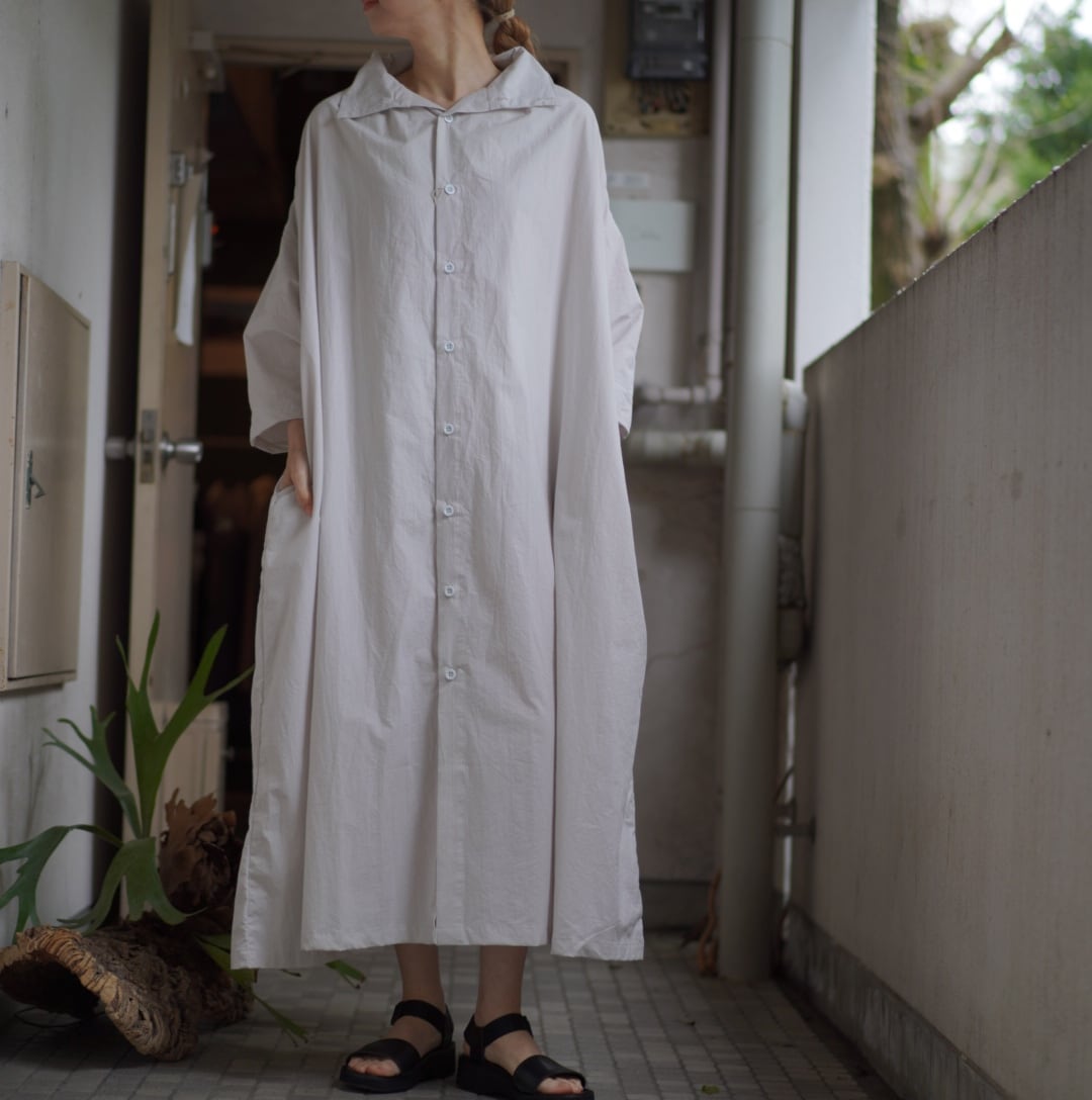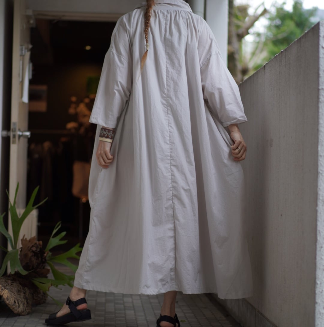 Yarmo(ヤーモ) コットン キャンブリック ハイカラー ギャザー ドレス Rainy Grey