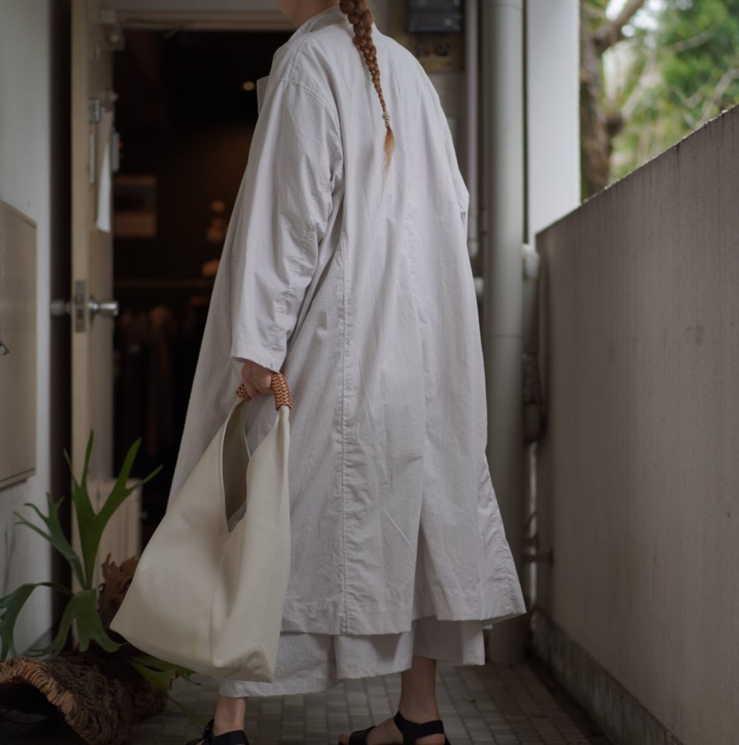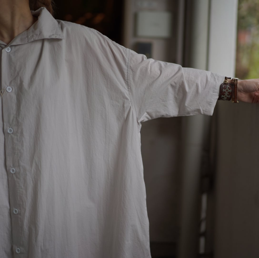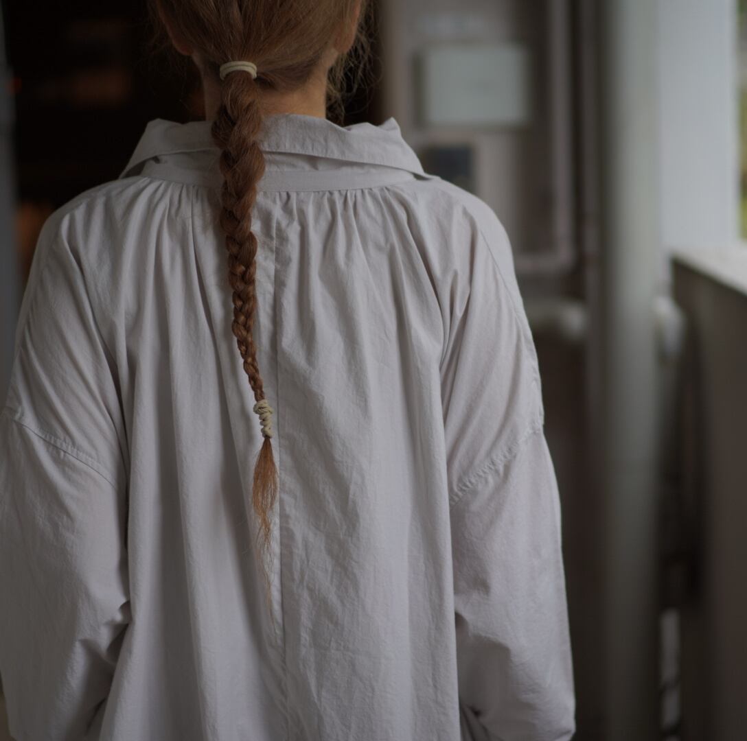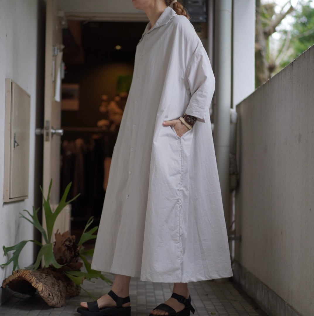 Yarmo(ヤーモ) コットン キャンブリック ハイカラー ギャザー ドレス Rainy Grey