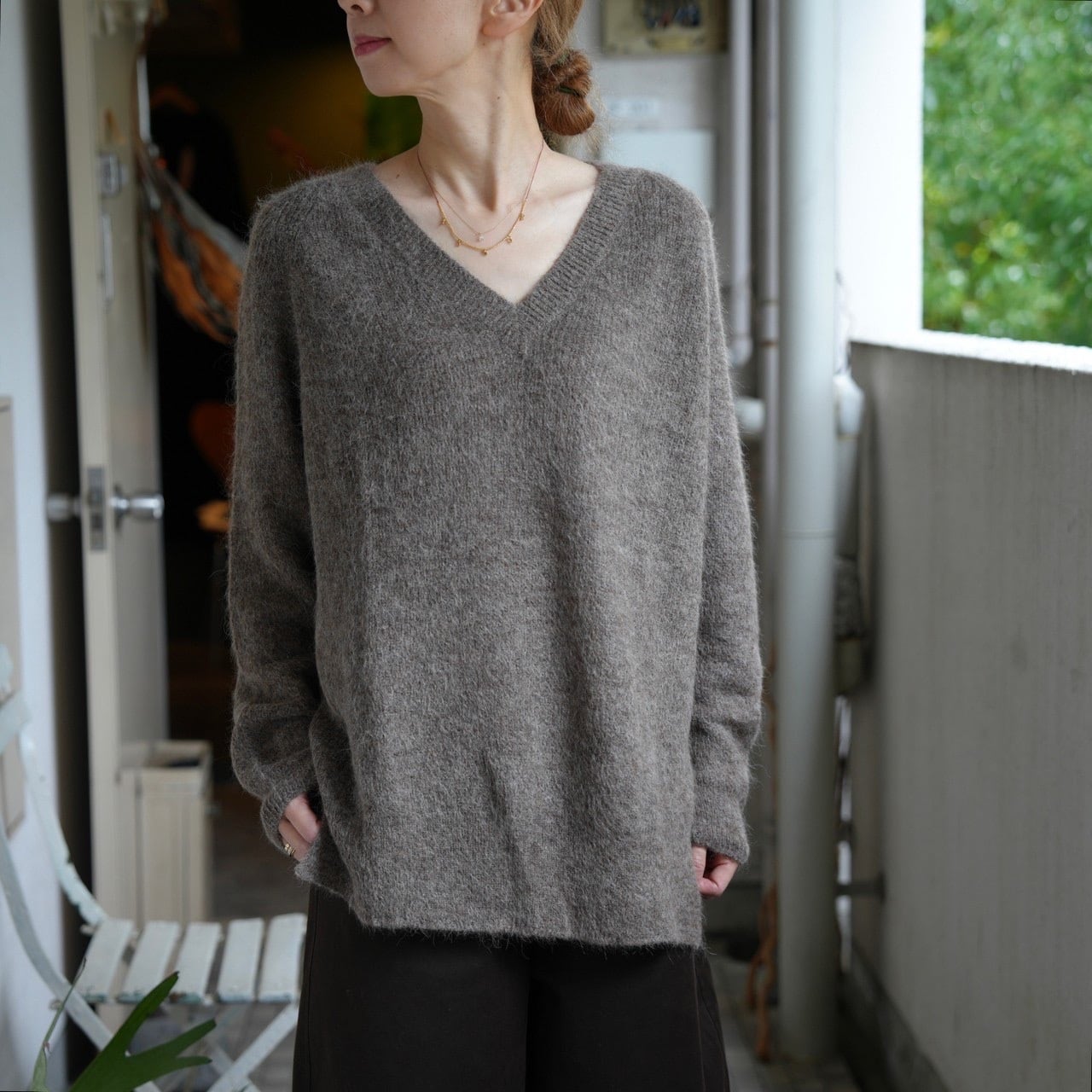 CORDERA(コルデラ) SURI V-NECK SWEATER TAUPE 230309-T-U