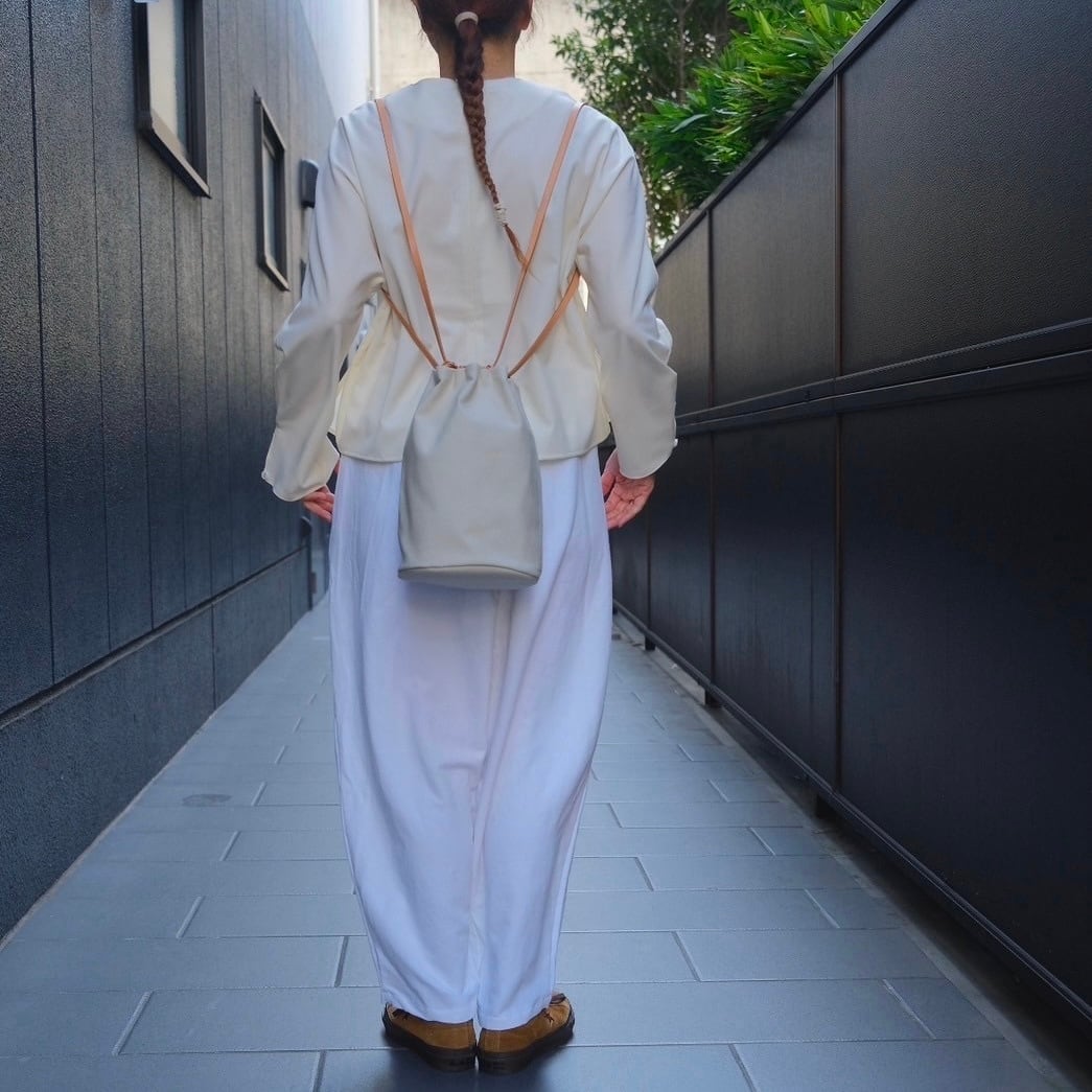 KAMARO'AN(カマロアン) Woven Drawstring Bucket Bag ivory